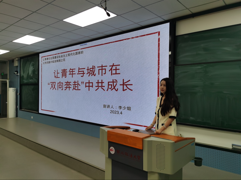 为全面深入学习领会党的二十大精神,发挥共青团作为党联系青年的枢纽作用、 引领凝聚青年、组织动员青年、联系服务青年。2023年4月21日上午,校二十大理论宣讲团成员吕浩然、董醒玉、王嘉慧、李少煊为成人论坛 学生进行宣讲。活动由马军强老师主持。