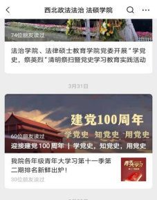 自3月以来,成人论坛 党委积极部署谋划,广泛调研,力求以师生兴趣点、关注点为切入口,以新媒体为载体,充分调动学生主动性、积极性和创造性,以党支部为单位在负责教师指导下进行素材收集、思路整理和内容撰写。最大程度保证内容原创性的同时,让学生在整理素材和撰写推文过程中感悟党史魅力,提升理论素养。截止目前,栏目已推送两期内容,当前阶段系列推文主要围绕党史学习动员、中国共产党历史重大会议介绍为主题进行撰写。通过介绍党史学习重大意义、学习内容和基本要求,引导全院师生高度重视党史学习,提升党史学习自觉性;通过回顾中国共产党历史上的重要会议,引导全院师生深入学习会议的基本内容、深刻内涵及其重大意义,全方位、分阶段、深层次把握党的科学理论和实践经验。