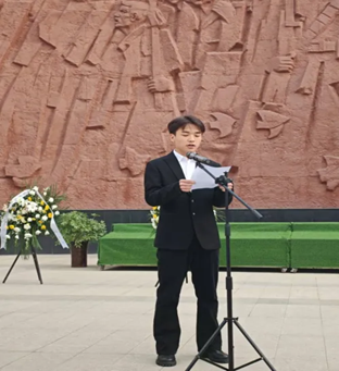 学生代表石俊辉向革命先烈献词,表达对革命先烈的追思与同学们完成新时代使命的坚定信念。