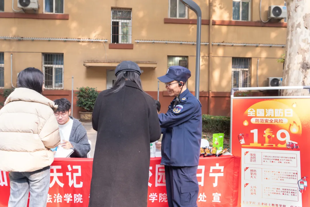 联合保卫处举办主题为“消防知识天天记 平安校园日日宁”的消防安全知识宣传活动,现场百余名同学参与此次活动。
