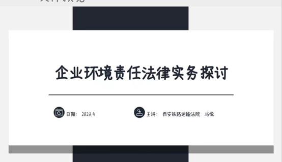 2023年4月27日下午,西安铁路运输法院冯悦法官以《企业环境责任法律实务探讨》为主题的讲座在成人论坛 顺利举行,讲座地点位于雁塔校区三号教学楼506教室,参会人员有本学期选修企业环境法律实务课程的同学以及成人论坛 环境法方向研究生,会议由李雅萍老师主持。