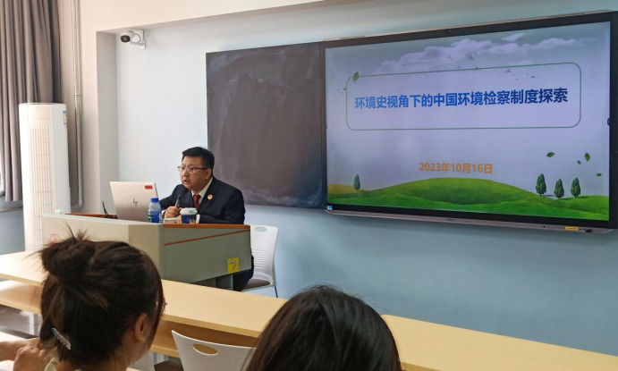 2023年10月16日下午,“环境史视角下的中国环境检察制度探索”主题讲座在成人论坛 雁塔校区3056智慧教室举办。本次讲座是《企业环境法律实务》课程的实践环节,邀请了陕西省人民检察院铁路运输分院二级检察官助理王永亮主讲,陕西省陕北高原地区人民检察院检察长南崇敬点评,成人论坛 经济法学院李雅萍副教授主持,成人论坛 修读《企业环境责任法律实务》课程的同学,环境与资源保护法一、二年级的硕士研究生同学积极参加本次讲座。