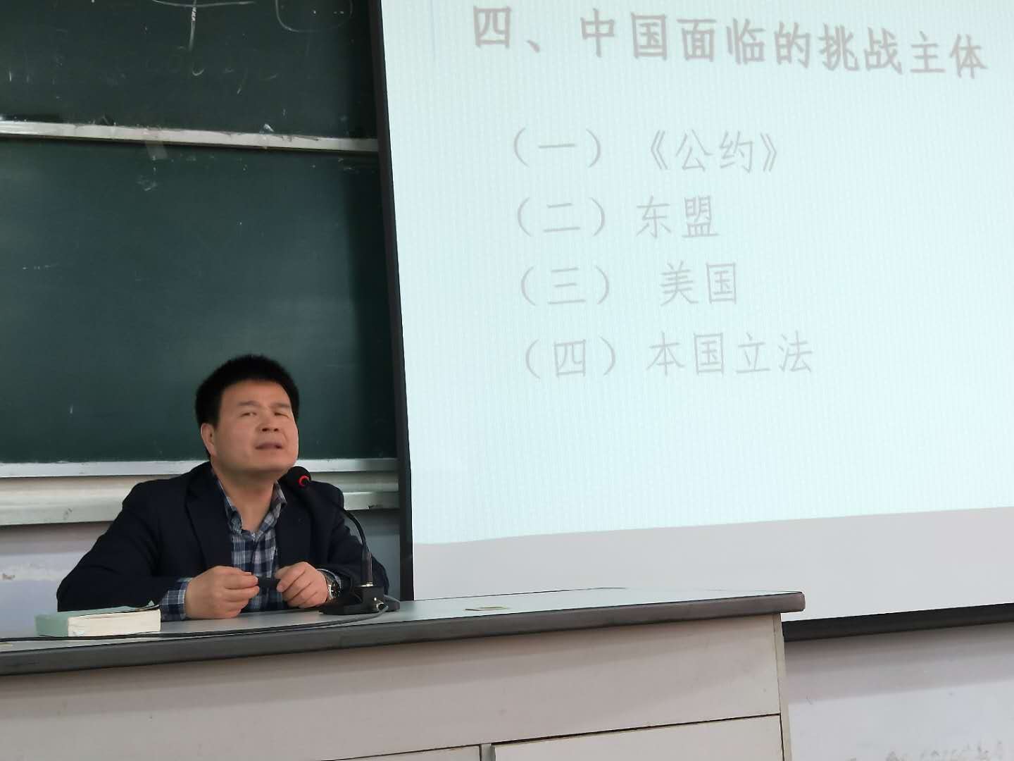 潘教授首先介绍了南海仲裁案的相关背景知识,同时讲解了联合国《国际海洋法公约》签署的过程,国际仲裁组成人员的情况,我国南海诸岛的现状等,从而指出我国面临的挑战主体和机遇。在接下来的提问环节,潘老师也耐心细致地为大家解答,同学们都为他渊博的知识以及丰富的办案经验所折服。