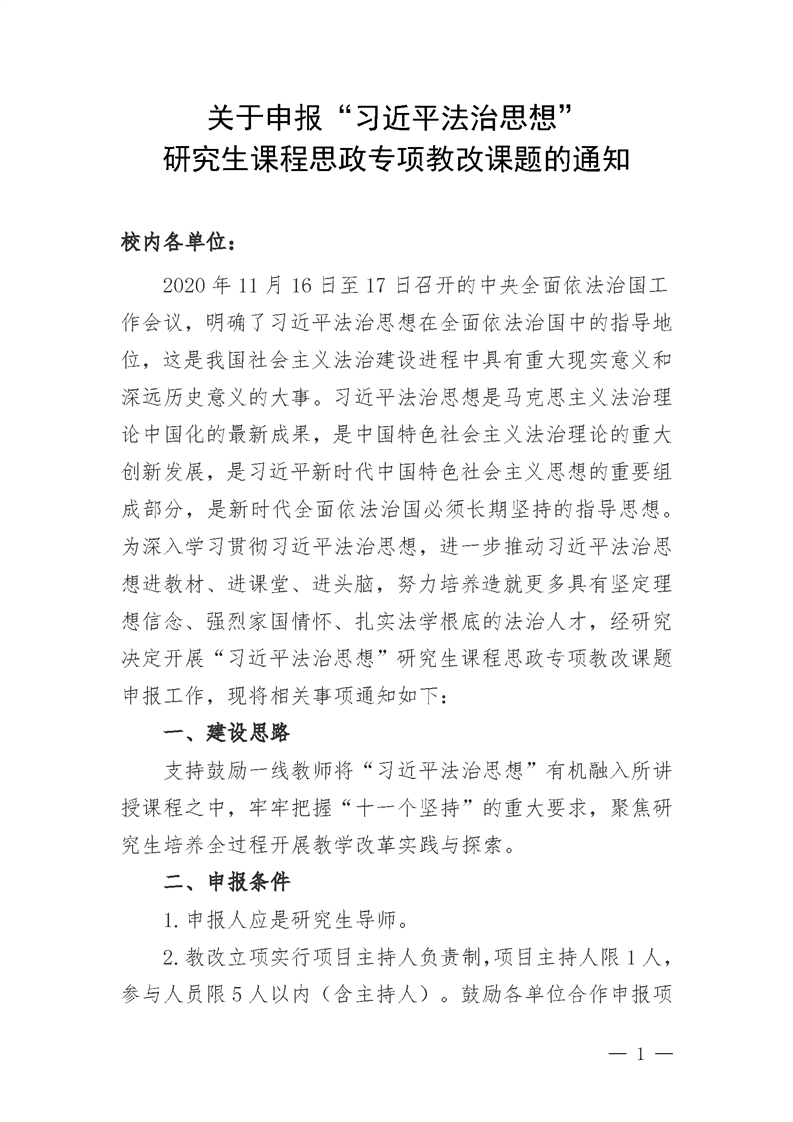 附件1:关于申报“习近平法治思想”研究生课程思政专项教改课题的通知20240412(2).doc