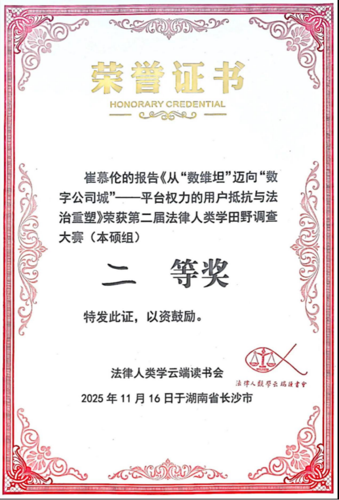 学院始终积极推动研究生参与全国性高水平学科竞赛,鼓励研究生扎根中国本土实践,鼓励研究生在实践中锤炼专业能力,以理论创新回应社会需求,培养兼具实践能力与理论素养的复合型法治人才。