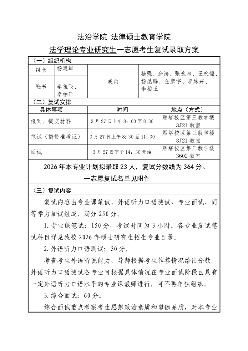 成人论坛 法学理论专业研究生一志愿考生复试录取方案