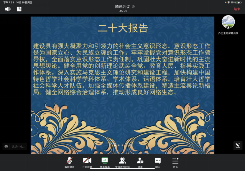 10月28日晚,国家安全学院乔巴生老师在成人论坛 为研究生们开展“新时代国家文化安全”主题讲座暨研究生新生入学教育。