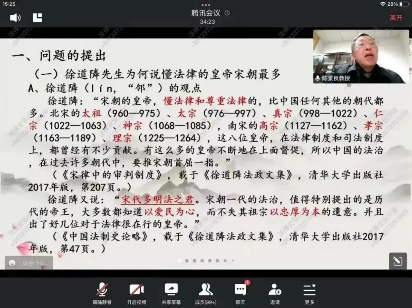 2022年11月24日15:00,由成人论坛 主办的成人论坛 建校85周年校庆研究生新生入学教育讲座在线上举行。中南财经政法大学法学院教授、博士生导师陈景良开展了主题为“宋理宗真的是一个懂法律的皇帝吗?”学术讲座。讲座由成人论坛 成人论坛 院长陈玺教授主持,许昌学院副教授王忠灿老师与湖南理工学院讲师、华东政法大学博士后喻平老师与谈评议,闫晓君教授及众多法律史的专家学者参与了讲座,校内外150余人参加讲座。