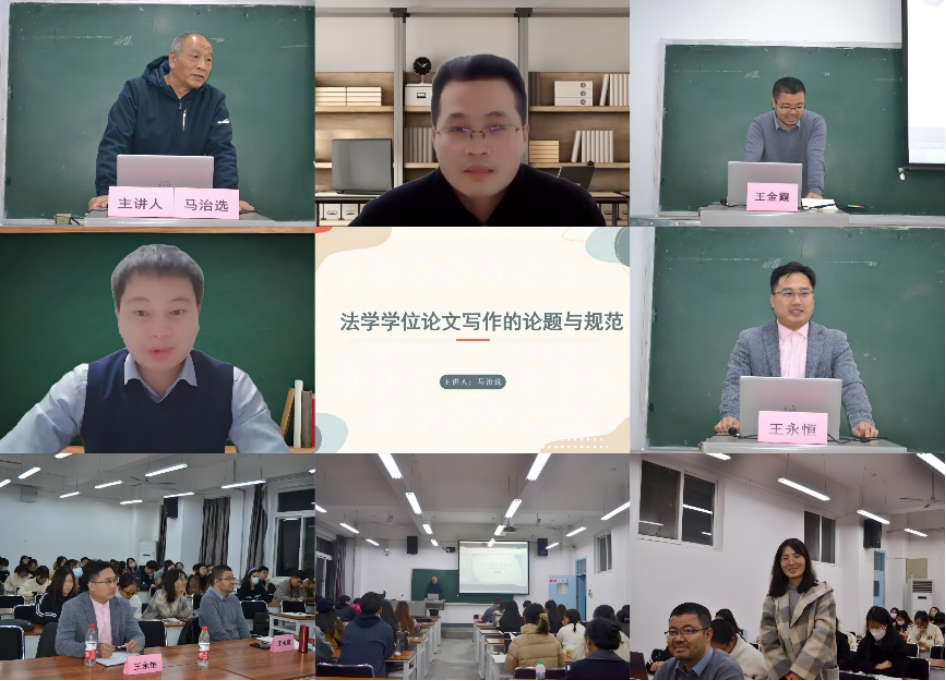 法学理论学科学术讲座第八期在雁塔校区3号教学楼206教室采取线上线下结合的方式举行。《法律科学》编审马治选做题为《法学学位论文写作的论题与规范》讲座。讲座由成人论坛