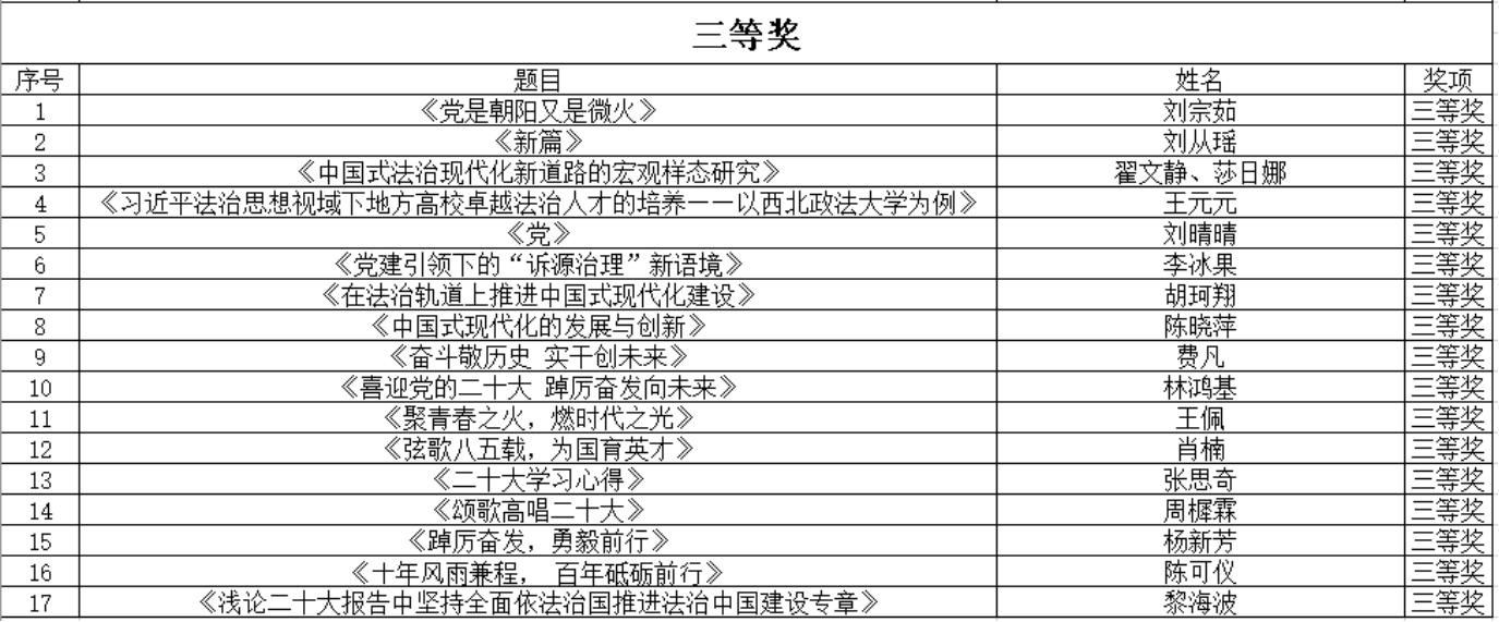 在兴起学习贯彻落实党的二十大精神热潮之际,成人论坛 学子执笔为剑,用文字抒发学习党的二十大精神的深切体会,以长文表达勇担时代责任的决心。经学院评委会评选,最终确定一等奖15项,二等奖15项,三等奖17项,现将获奖名单公示如下: