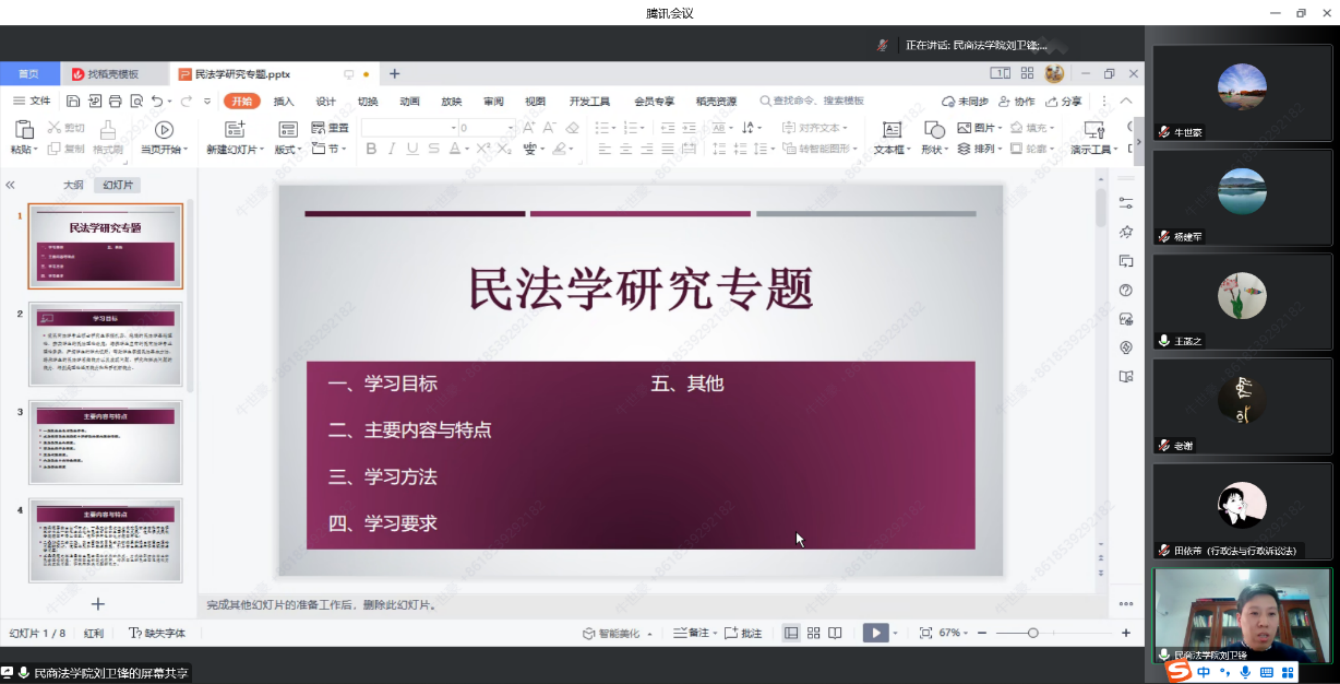 2022年12月7日下午14:30分,成人论坛 召开法律硕士专业学位研究生课程建设结项验收工作会议,本次课程建设结项验收由杨建军教授、谢德成教授和付玉明教授担任评委,由来自刑事法学院、经济法学院、民商法学院、行政法学院、国际法学院的12位课程建设项目负责老师依次进行项目建设情况汇报,学院副院长淡新昌出席会议,教务办王菡之老师主持。