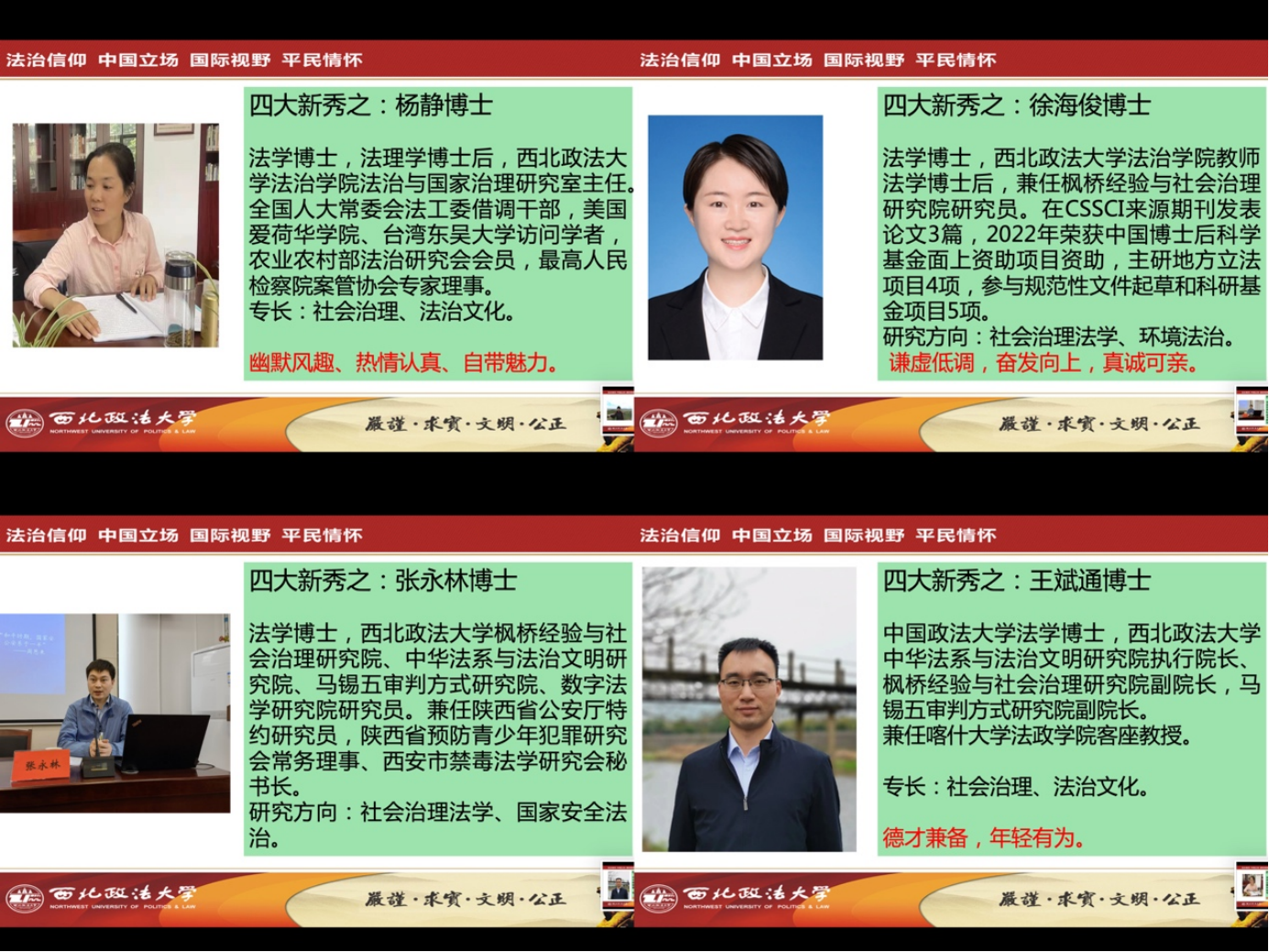 此次讲座加深了研究生对社会治理法学研究方向的认识和了解,老师和同学在线上积极交流互动,与会人员受益匪浅。最后,与会老师围绕党建活动的开展,学工工作和调研活动的结合进行了商讨,本次学工沙龙活动在热烈的氛围中圆满结束。
