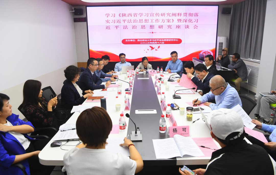 4月18日下午,由学校习近平法治思想研究中心主办的学习《陕西省学习宣传研究阐释贯彻落实习近平法治思想工作方案》暨深化习近平法治思想研究座谈会在雁塔校区举行。校党委书记孙国华,副校长、习近平法治思想研究中心副主任、首席专家王健,陕西省法学会党组成员、研究部主任申月霞出席会议。致辞环节由成人论坛 党委副书记、院长陈玺教授主持,主题发言由科研处处长李瑰华教授主持。