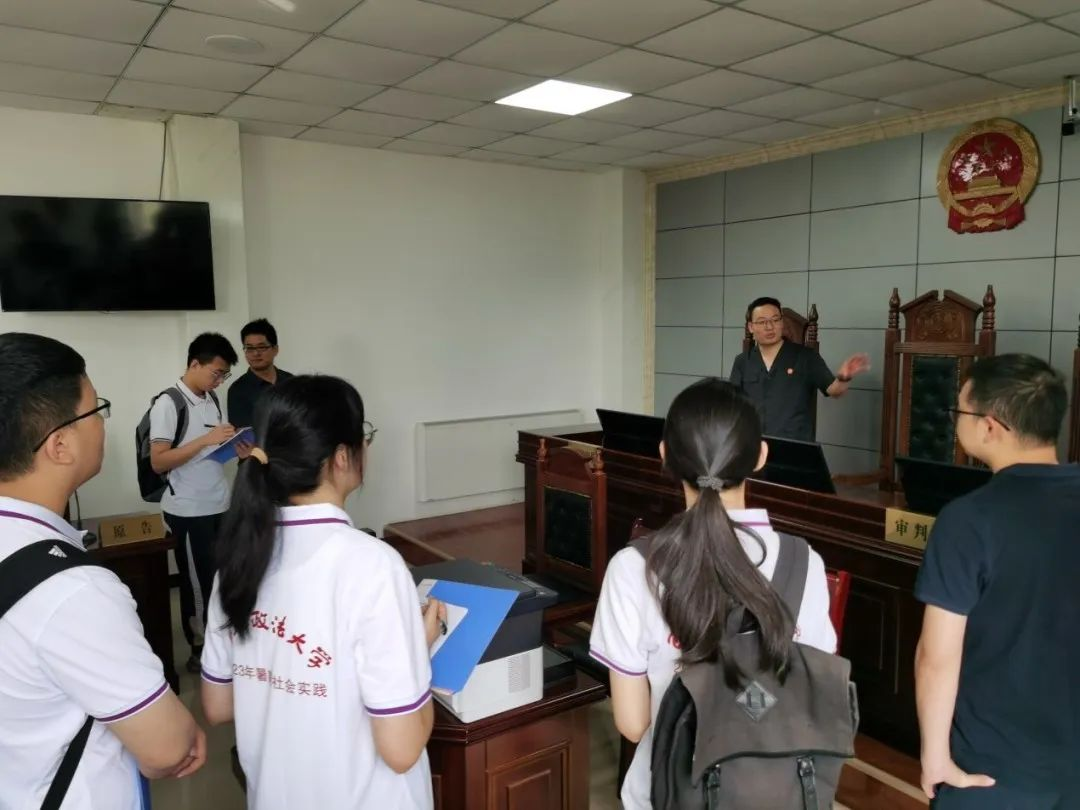 之后,团队一行到山阳县人民法院高坝人民法庭听取王乐庭长有关本辖区近4的诉讼案件基本情况,了解庭审直播、网上送达、办案系统、财产保全查询等法庭便捷地科技基础设施。王乐庭长更是为同学认真讲解法庭诉源治理工作,充分发挥人民法庭作为基层治理最小“单元格”作用,深化乡村法庭诉源治理工作,助推乡村振兴。