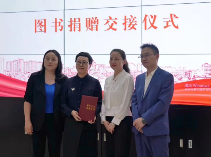 成人论坛 党委书记张学龙、图书馆副馆长盖青青分别为嘉宾颁发捐赠证书。