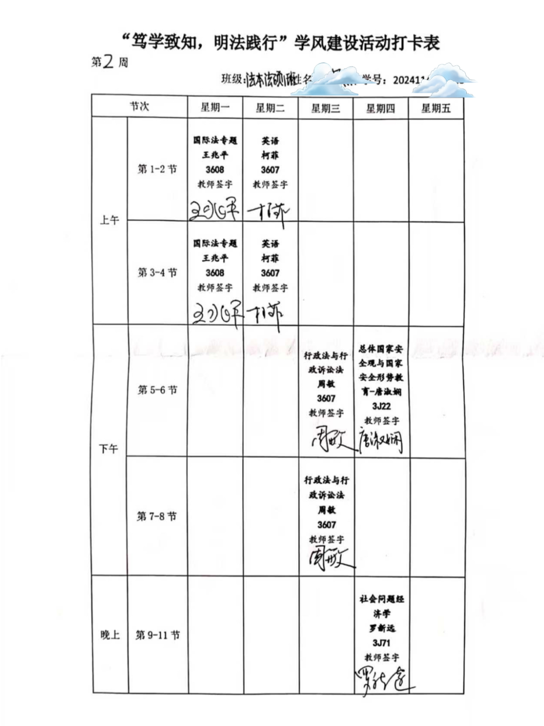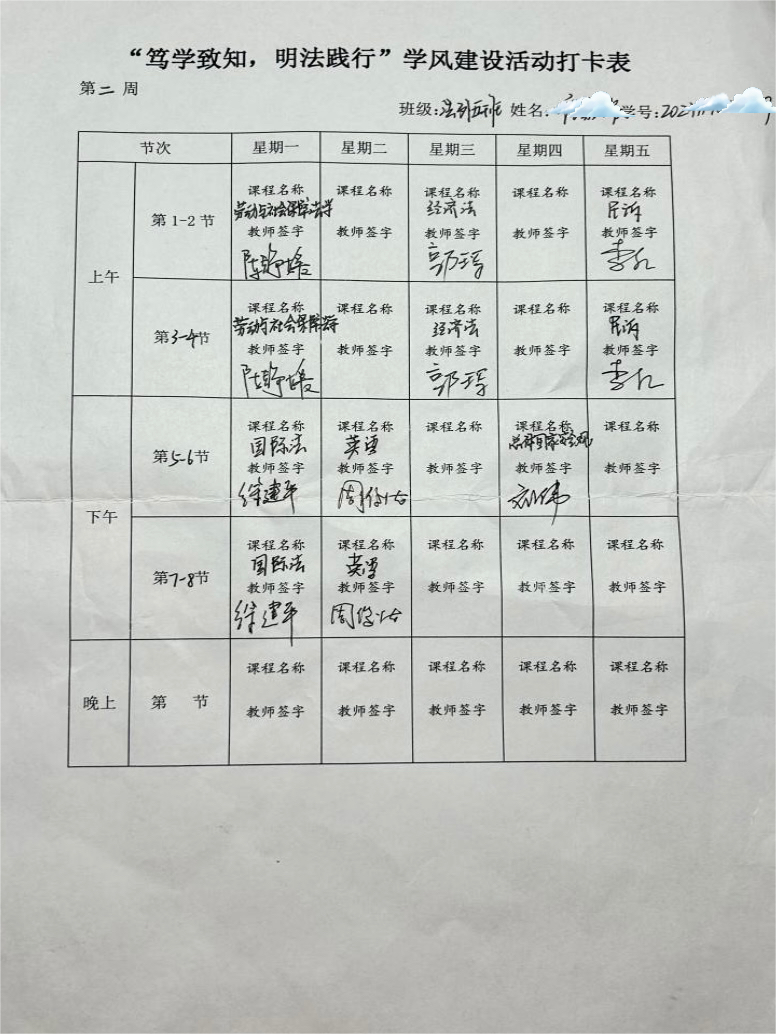 成人论坛 成人论坛 主办的"笃学致知,明法践行"学风建设打卡活动于3月9日圆满落幕。在为期14天的活动中,成人论坛 全体学生积极参与,以教室前排为学习阵地,通过系统化学习打卡与课堂实践,展现了新时代法科学子的治学风貌。
