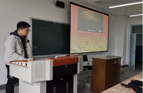 第二环节,党支部委员付诗杰领学“亢慕义斋”的故事。付诗杰分别从历史背景、成立时间、人员构成、名称由来和历史意义对“亢慕义斋”进行了细致深入的讲解。他介绍到,1920年,在李大钊指导下,邓中夏、高君宇等19人在北京大学秘密成立马克斯(今译马克思)学说研究会。研究会成立后便要了两间屋子作为活动场所,一间是办公室,一间当图书室,即“亢慕义斋”,为中国共产党的建立作了思想和组织上的准备,也掀开了马克思主义中国化的序章,让马克思主义的种子开始在中国革命热土上落地生花。