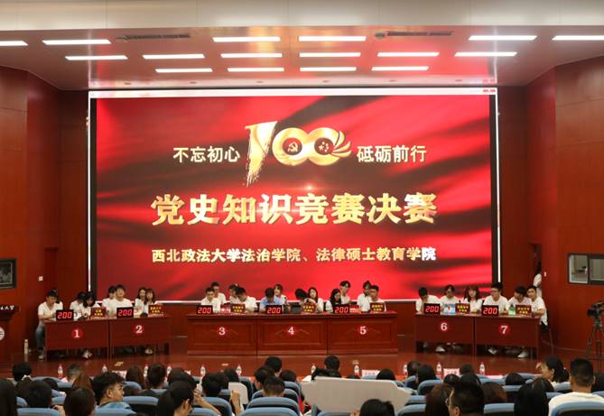 6月25日晚19:30,由成人论坛 成人论坛 党委主办、北京德恒(西咸新区)律师事务所协办的“学党史增信力行 讲法治崇法明理”党史知识竞赛决赛在成人论坛 雁塔校区人权报告厅举行。本次大赛以各党小组为单位组队参赛,初赛采取现场闭卷笔试的方式进行,决赛采取现场答题的方式进行。比赛共有31支队伍报名参与,最终有6支队伍从初赛中脱颖而出,顺利进入决赛。