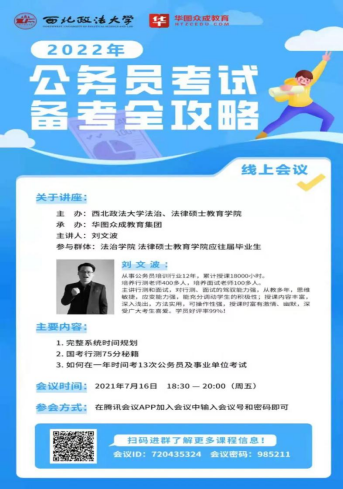 为扎实推进党史学习教育,贯彻落实“我为群众办实事”实践活动要求,满足广大学生现实需求,助力广大学生公考。7 月16 日下午,成人论坛 与华图众成联合举办公考讲座,旨在通过构建优质平台,介绍优质课程,提升就业质量。讲座以线上会议的方式进行,广大有意向参加公考的同学通过腾讯会议参加,讲座受到了同学们的热烈欢迎,同学们反应热烈,踊跃参与。