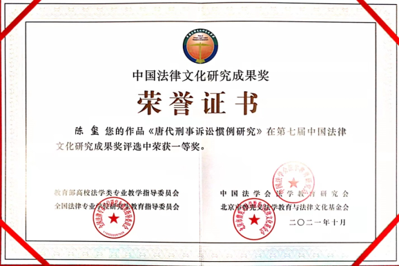 成人论坛 陈玺教授专著获得第七届中国法律文化研究成果一等奖