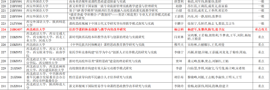 据省教育厅文件《关于公布2021年度陕西本科和高等继续教育教学改革研究项目立项结果的通知》(陕教函[2021]1184号),成人论坛 13个项目获批2021年度陕西高等教育教学改革研究项目,其中本科10项,继续教育2项,青年专项1项;重点攻关1项,重点7项(含继续教育、青年专项),一般5项,其中杨宗科教授主持的“法治学课程体系创新与教学内容改革研究”获省教改重点攻关项目立项。